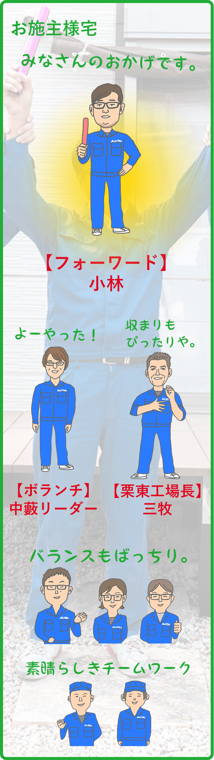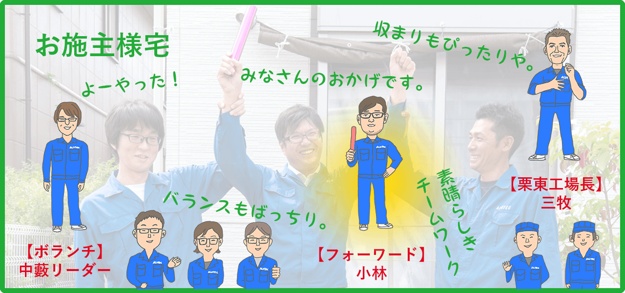 栗東工場で製造された特注品を、小林がお客様宅に伺い、施工します。中藪リーダー、三牧工場長も同行します。満面の笑みのお客様からお褒めの言葉をいただき、めでたしめでたしです。