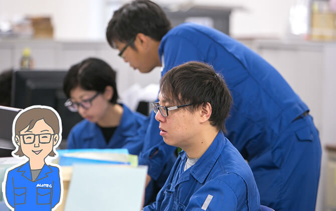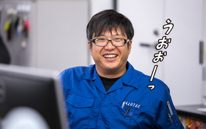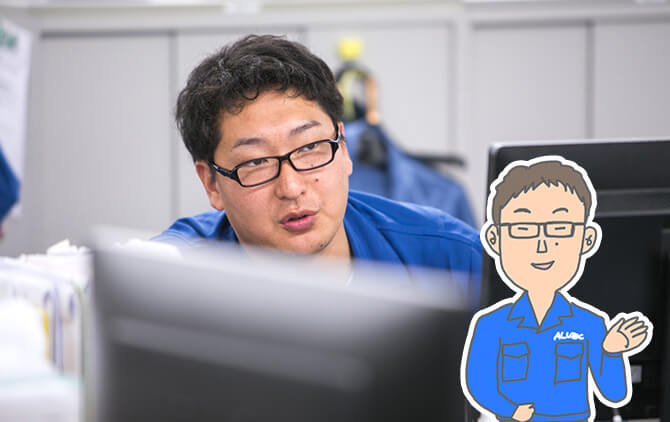 営業設計部のリーダー。お客さま対応ならびに栗東工場、石部工場への発注起点として、部員4名を統率する。チームJ-Alutecのボランチ的存在。