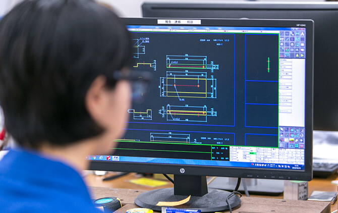 【補足説明】石部工場では仕様が決まっている製品を量産しています。毎朝、石部工場に直接お客様から製造、出荷点数の指示がありますが、特注仕様での出荷依頼が生じると営業設計部に設計図作成のリクエストがあります。