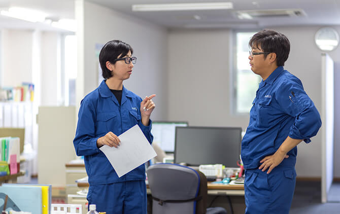 廣瀬 小林さん、設計変更しましたので、これを石部工場の山出工場長に届けてもらえます?