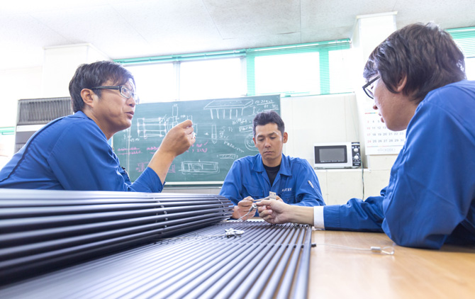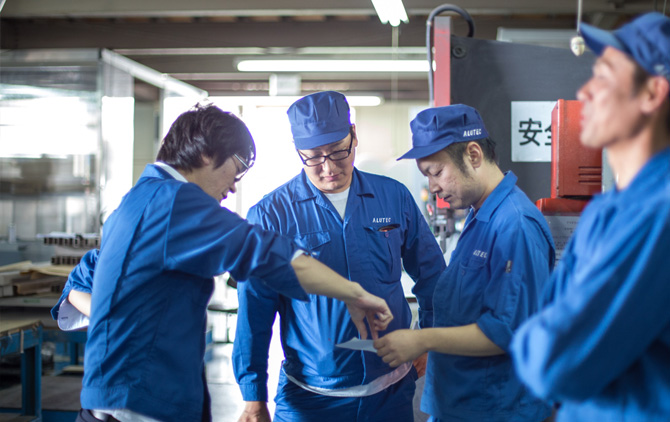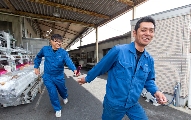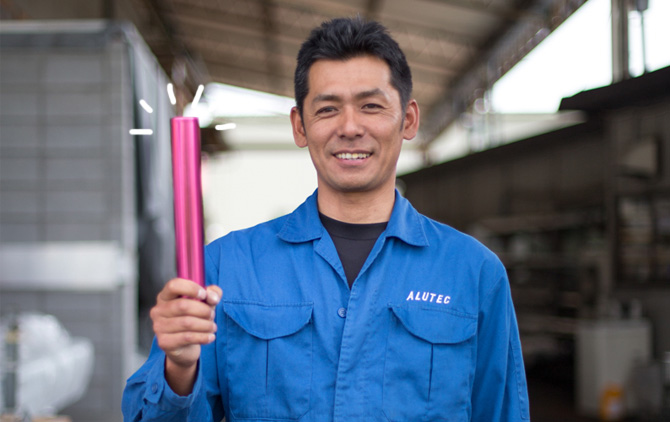 特注品を手がける栗東工場のリーダー。野球で鍛え上げたスレンダーなボディと甘いマスクから、チームJ-alutec随一のイケメンと称される。頑固者が多いプロの職人集団に敬意を払い、礼儀正しく、誠実に相対することで、チームを一つにまとめ上げている。